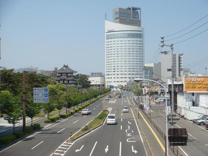 Keywords: Mizuki-Dori, Takamatsu-city.JPG en Takamatsu city ja 香 高 市 宇高国道フェリー乗り場前歩道橋から撮影した水城 り sunport1216 file sunport1216 2010-05-15 Route 30 Japan Route 436 Japan Streets in Takamatsu