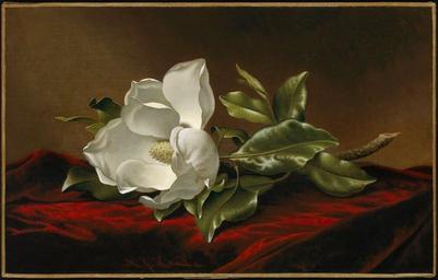 | Keywords: MJ Heade Magnolia Grandiflora 1885-1895.jpg Magnolia Grandiflora Creator Martin Johnson Heade about 1885-95 oil canvas 38 42 x 61 28 cm 15 1/8 x 24 1/8 in Boston Massachusetts United States of America institution Museum of Fine Arts Boston In the late 1880s after settling in Florida Heade painted a series of reclining magnolias In these canvases he contrasted the milky-white petals and glossy green leaves of the indigenous Magnolia grandiflora to the rich texture and color of the velvet One critic likened these sensuous works to odalisques on a couch Museum of Fine Arts Boston Lower left center M J Heade object history Provenance <br>About 1885-95 the artist Private collection Philadelphia; Philadelphia art market; with A Frederick Mondschein New York; with Newhouse Galleries New York; Joseph Katz Baltimore; 1946 with Victor Spark New York; 1946 sold by Victor Spark to Maxim Karolik Newport R I ; 1947 gift of Maxim Karolik to the MFA Accession Date June 12 1947 credit line Courtesy of the Museum of Fine Arts Boston Massachusetts http //www mfa org/collections/object/magnolia-grandiflora-33042 PD-old-100 Other versions cc-by-sa-3 0 Uploaded with UploadWizard 1880s paintings by Martin Johnson Heade American paintings in the Museum of Fine Arts Boston Paintings of Magnolias by Martin Johnson Heade 1880s still-life paintings |