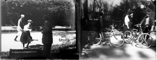 -- Homme -- Femme -- Bicyclette -- Chapeau -- Casquette -- Promenade -- Divertissement et sport -- Costume féminin -- Costume masculin