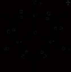 | Keywords: Mn3O(OAc)6.png manganese III acetate based on single-crystal X-ray crystallography of an analogous compound for a different metal This whole complex is a cation with a +1 charge; there is a “1 anionic counterion not included in the diagram The three water molecules are ligands on the manganese atoms based on the known structure of the analogous en rhodium compound --they are not waters of crystallization representing a hydrate form of the compound cite journal Glowiak T; Kubiak M ; Szymanska-Buzar T Crystal and molecular structures of trinuclear rhodium III complexes trans-μ<sub>3</sub>-oxo-trisbis acetato aquarhodium III perchlorate dihydrate and monohydrate Acta Crystallographica Section B 1977 33 6 1732 “1737 10 1107/S0567740877006979 However the true structure of the actual manganese compounds may have acetic acid or acetate units instead of these water molecules see en wp article own Smokefoot date Mn3O OAc 6 AcO AcOH png Acetato complexes Manganese complexes |