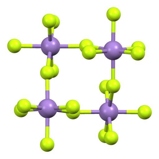 | Keywords: Mn4F20-ring-from-alpha-MnF4-xtal-1987-Mercury-3D-balls.png Ball-and-stick model of an Mn<sub>4</sub>F<sub>20</sub> ring in the crystal structure of -manganese IV fluoride MnF<sub>4</sub> Colour code 9c7bc6 Manganese Mn light purple d4f03f Fluorine F yellow-green Structure determined by X-ray crystallography reported in Z Naturforsch B 1987 42 1102 “1106 ICSD 62069 Model manipulated and image generated in http //www ccdc cam ac uk/products/mercury/ CCDC Mercury 3 0 Own 2012-07-22 Ben Mills Benjah-bmm27 Images by Ben Mills Manganese IV fluoride |