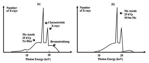 | Keywords: MoAnodeSpectra.jpg en X-ray energy spectra for a a Mo anode XRT and b filtered using a 30 mu m Mo filter own Kieranmaher 2001-01-01 Reproduced with permission from Heggie JCP Liddell NA Maher KP 2001 Applied Imaging Technology 4th Edition Cc-zero Physics diagrams |