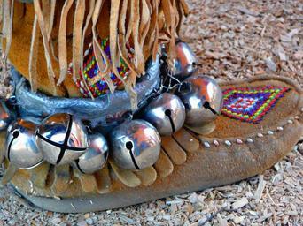Keywords: mocassin shoe native indian footwear leather shoe bell foot-gear pair shoes foot powwow