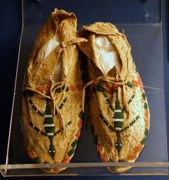 | Keywords: Moccasins, Cheyenne peoples, early 20th century, hide, glass - Fernbank Museum of Natural History - DSC09969.JPG en Exhibit in the Fernbank Museum of Natural History Atlanta Georgia USA Photography was permitted in the museum without restriction 2012-03-17 00 37 49 own Daderot cc-zero Ethnographic items in the Fernbank Museum of Natural History Uploaded with UploadWizard Cheyenne Moccasins in museums | ||||