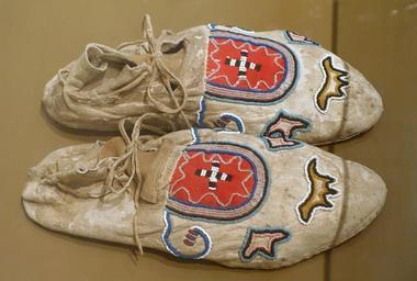 | View Original: | Moccasins with beadwork and red cloth, Jicarilla Apache, c. 1870 - Ethnological Museum, Berlin - DSC01114.JPG (5058x3411) | |||