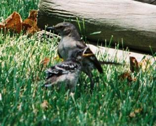 Keywords: Mockingbird Feeding Chick003.jpg Northern Mockingbird Feeding Her Chick Own 2007-07-12 Lsi john Mimus polyglottos juvenile Birds feeding young