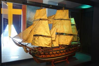 | Keywords: Model of 56-gun man-of-war, mid 1700s - Marinmuseum, Karlskrona, Sweden - DSC08871.JPG en Exhibit in the Marinmuseum Karlskrona Sweden This exhibit is old enough so that it is in the public domain Photography was permitted in the museum without restriction 2014-09-11 06 50 36 own Daderot other versions cc-zero Uploaded with UploadWizard Models Hall in Marinmuseum | ||||