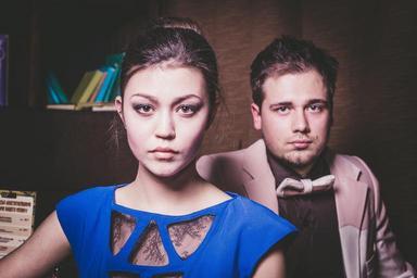 Keywords: model dress emotions fashion woman girl cosmetics beauty dark background wall jacket style view man sitting sofa table