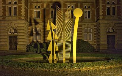 Keywords: modern art abendstimmung building illuminated art shadow modern gold evening night grevenbroich