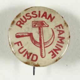 MAKE A MEME View Large Image ...Russian Famine Fund', white ground, metal pin on reverse side, paper covered with plastic, over metal base. TWL.2004.802 Badge, paper, plastic, metal, round, red and white scythe and hammer motif, red printed inscription: 'Russian Famine ...