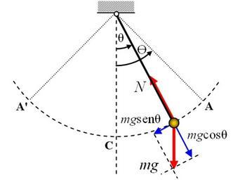 Keywords: Moglfm1309 pendulosimple.jpg es Pendulo simple - Esquema de fuerzas own Algarabia 2009 Diagrams of pendulums