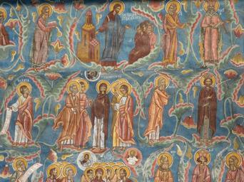 | Keywords: Moldovita murals 2010 26.jpg Moldoviţa Monastery Romania The church is one of the Painted churches of northern Moldavia listed in UNESCO's list of World Heritage sites own photo 14 d'Août 2010 Man vyi Own work all rights released Public domain Moldovita murals |