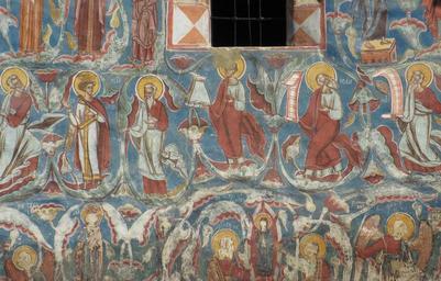 | Keywords: Moldovita murals 2010 28.jpg Moldoviţa Monastery Romania The church is one of the Painted churches of northern Moldavia listed in UNESCO's list of World Heritage sites own photo 14 d'Août 2010 Man vyi Own work all rights released Public domain Moldovita murals |