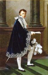 | Keywords: Mollien.jpg Count Mollien in Napoleonic court costume François-Nicolas comte Mollien ministre du trésor public sous l'Empire 1758-1850 - en costume de cour à la française 1806 Oil on canvas cm 214 137 Institution Versailles MV8653 http //www photo rmn fr/cf/htm/CSearchZ aspx o Total 8 FP 64456010 E 2K1KTSJTGRWEH SID 2K1KTSJTGRWEH New T Pic 2 SubE 2C6NU0HW96TO http //www photo rmn fr/ other versions PD-old-100 DEFAULTSORT 1806 Mollien Nicolas Francois Files uploaded by Shakko from various sources Robert Lefèvre 19th-century portrait paintings in the Musée national du Château de Versailles Nicolas François Mollien 1806 oil on canvas paintings in France Portrait 1806 portrait paintings from France Male 19th-century oil portraits of standing men at full length in ceremonial costumes Badges of the Legion of Honour in portrait paintings Breeches in art Ceremonial clothing of politicians of the First French Empire in portraits Cloaks in art Columns in portrait paintings Jabots in art Male shoes in portrait paintings Ministers of the First French Empire Portrait paintings of men of France Portraits with step Stairs in art Images from Réunion des musées nationaux |