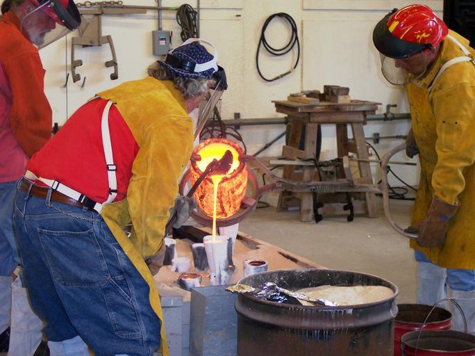 Keywords: molten bronze cast iron artists crucible hot foundry men metal fire industrial glow glasses protection male flame