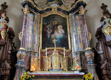 | Keywords: Mommenheim StMaurice 18.JPG Alsace Bas-Rhin Mommenheim Église Saint-Maurice Maître-autel XVIIIe Tableau Adoration des bergers M Feuerstein 1891 own 2013 Ralph Hammann cc-by-sa-3 0 Artwork / Œuvre d'art / Kunstwerk Artwork Creator Martin von Feuerstein 1891 oil canvas cm Eglise Saint-Maurice Mommenheim Maître-autel PM67000547 IM67007164 object history Tableaux d'origine des contretables disparus ; le tableau du maître-autel devait représenter saint Maurice cartouche avec initiales S M ; ceux des couronnements par G Huss datent de 1877 ceux des contretables par Martin Feuerstein de 1891 à 1893 ; les autels les retables et le tabernacle sont du 18e siècle other versions Ralph Hammann sur le tableau du Dieu le Père signature nom des donateurs date 1877 ; signature et dates 1893 sur l'Annonciation 1892 sur le saint François 1891 sur l'Adoration des bergers PD-old accession number Photographs of Mommenheim by Ralph Hammann Taken with Canon PowerShot SX20 IS Choir altar of Église Saint-Maurice de Mommenheim Objets monuments historiques in Bas-Rhin church paintings 19th-century church paintings in Alsace Adoration by the shepherds in paintings 19th-century paintings of adoration by the shepherds Martin von Feuerstein 1891 works in Alsace |