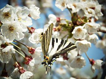 Keywords: monarch butterfly flowers tree fruit butterfly orchard field colorful