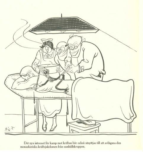 | Keywords: Monarchistcancercaricature-hp-1928.PNG caricature of Gustaf V of Sweden by Hjalmar Pettersson published in Folkets Dagblad Politiken April 30 1928 The captions reads Det nya intresset för kamp mot kräftan bör också utnyttjas till att avlägsna den monarkistiska kräftsjukdomen från samhällskroppen 'The new interest to fight cancer should also be used for removing the monarchist cancer disease from the body of society' Bramsjö/Florin Hjalmar Pettersson Sanningen om Sverige Stockholm Arbetarkultur 1928-04-30 Hjalmar Pettersson d 1931 PD-old-75 20th-century caricatures Gustav V of Sweden Hjalmar Pettersson |