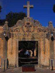 Keywords: monastery cura input goal door portal cross cura algaida courtyard hof building architecture santuari de nostra senyora de cura monastery puig de randa balearic islands spain mallorca franciscan monastery place of pilgrimage