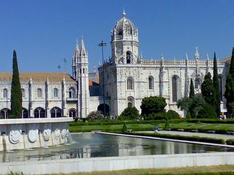 Keywords: Monastery Vasco Da Gama.jpg Mosteiro dos Jerónimos Lisboa Portugal own Gejeka Exterior of Mosteiro dos Jerónimos Fonte Luminosa da Praça do Império