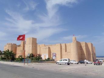 Keywords: Monastir, Ribat 2009.JPG de Monastir - Ribat arabische Burg hu Monasztri erődítménye egyike a legrégebbi arab erődöknek Saját kép Pan Peter 2009-08-15 Exteriors of the ribat of Monastir Buildings with flags in Tunisia