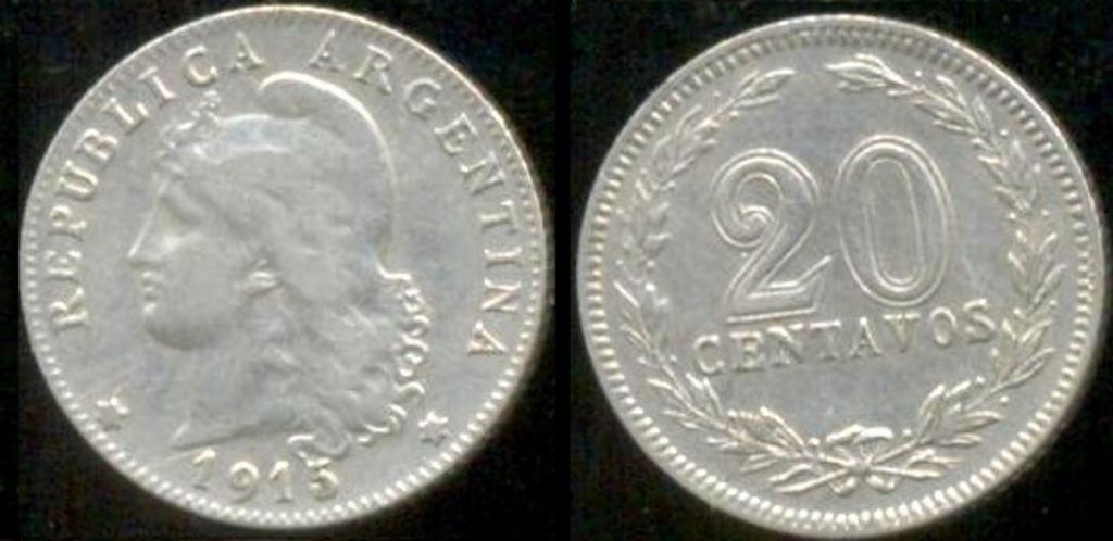 | Keywords: Moneda 20 centavos - Peso Moneda Nacional - 1915 - Argentina.png es Moneda de 20 centavos de 1915 Argentine 20 centavos 1/100 of a peso Argentine coin Argentine Central Bank photograph by Turkmenistan 1915 Coin PD-Old <br/>Photograph Coins of Argentina 1915 coins |