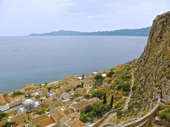 Keywords: monemvasia village greece rooftops coastal scenic historical
