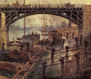 | Keywords: Monet men unloading coal.jpg charbon à dos d'homme à partir de péniches sur les quais de la Seine près du pont ferroviaire d'Asnières peint par Claude Monet 1875 Musée d'Orsay Coal on their backs from barges on the quays of the Seine River near the railway bridge of Asnières painted by Claude Monet 1875 Museum Orsay fr huile sur toire en oil on canvas de Öl auf Leinwand cm 54 66 Paris Musée d'Orsay source 1875 Creator Claude Monet PD-old-auto 1926 Other versions 1875 paintings 1870s paintings by Claude Monet 1875 Paintings of men at work paintings by Claude Monet in the Musée d'Orsay Paintings of the Seine by Claude Monet Ship loaders and unloaders |
