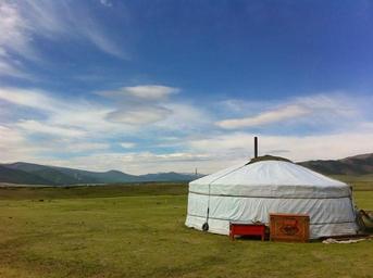 Keywords: mongolia landscape sky clouds grass plants tent mountains fields nature outside country countryside summer spring
