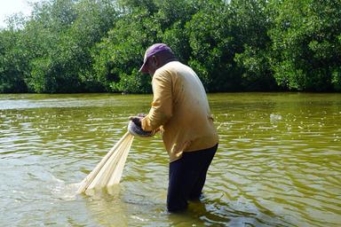 Keywords: mongroven forest water fish man work hard colombia kartagena poverty