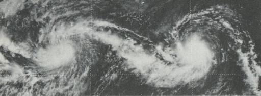 | Keywords: Monicananettesep2919751845UTC.gif en This weather satellite image of Tropical Storms Monica and Nanette was taken on September 29 1975 at 1845 UTC 2013-04-06 11 28 13 Mariners Weather Log May 1976 pg 134 NOAA PD-USGov Uploaded with UploadWizard Satellite pictures of multiple tropical cyclones |