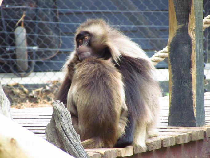Keywords: monkey cuddle furry zoo animal mammal wild cuddling hug primate brown