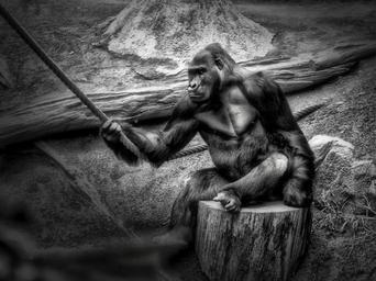 Keywords: monkey gorilla habitat zoo ape dew caught black and white s w
