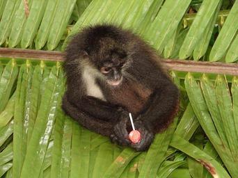 Keywords: monkey honduras mexico candy funny primate wildlife animal mammal nature tropical ape fur leaves ecotourism wild rain forest