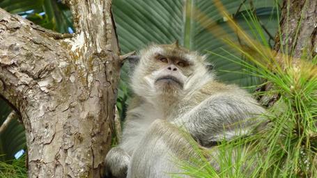 Keywords: monkey tree sit close animal tropical
