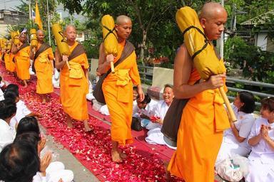 Keywords: monks buddhism buddhists monks walking ceremony rose petals petals tradition meditation thailand wat phra dhammakaya temple dhammakaya pagoda more than million budhas gold