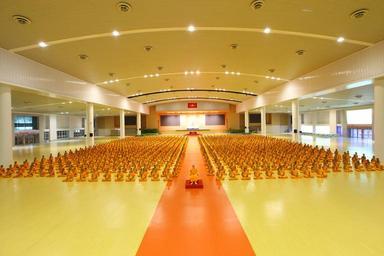 Keywords: monks temple buddhists praying prayer group people buddhism walk orange robes thai ceremony wat phra dhammakaya dhammakaya pagoda more than million budhas gold thailand