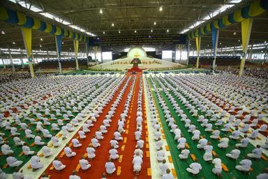 Keywords: monks thailand priesthood buddhism buddhists praying ceremony thai festival tradition people many wat phra dhammakaya temple dhammakaya pagoda more than million budhas gold