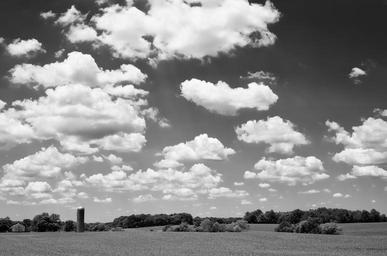 Keywords: monochrome black and white country rural barn field clouds farm landscape countryside outdoor grass meadow farmland tree scenic sky scenery horizon agriculture land