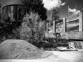Keywords: monochrome black and white landscape rural country scenic sky trees outdoor bw aggregate rocks truck wood grain tank