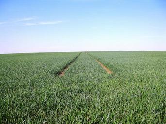 Keywords: monoculture away sky field fields agriculture cereals cornfield wheat grain fields cereal fields wheat field arable pet food tractor tracks traces tractor trace