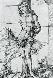 | Keywords: Monogrammist BOS met het mes 002.jpg Artwork Creator Monogrammist BOS with the knife Albrecht Dürer Other date between 1500 1525 copper engraving cm 9 7 6 6 Institution Wallraf-Richartz-Museum black and white image object history Unknown exhibition history credit line accession number www thuisinbrabant nl http //www thuisinbrabant nl Home http //www thuisinbrabant nl/geschiedenis/kunst/middeleeuwen-tot-ca-1550/schilderkunst/monogrammist- 27bos-met-het-mes 27 Info http //www thuisinbrabant nl/beeld/verhalen/_800/91160b_Michiel_van_Gemert jpg Pic 25 St Sebastian Tied to a Column jpg Original PD-old-100 Saint Sebastian Prints in the Wallraf-Richartz-Museum Monogrammist BOS Monogrammist BOS with the knife |