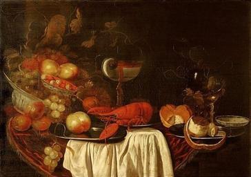 | Keywords: Monogrammist JHV Still life with a lobster.jpg Artwork Creator Monogrammist JHV formerly attributed to ca 1664 oil wood cm 56 86 Institution National Museum Warsaw Not on view accession number 186547 object history ProvenanceEvent 1946 transfer National Museum in Warsaw credit line J D Heem signature Jan Białostocki Maria Murdzeńska Danuta Książkiewicz Jan Kuglin 1969 Catalogue of paintings foreign schools Vol 1 National Museum in Warsaw cat no 493 p 172 http //www muzeum slupsk pl/archiwum/grafika/obce/duze/mng_sd_3_med jpg www muzeum slupsk pl See below PD-old-100 DEFAULTSORT 1664 circa; Still life with a lobster Monogrammist JHV Dutch paintings in the National Museum in Warsaw Still life paintings in the National Museum in Warsaw 17th-century paintings in the National Museum in Warsaw 17th-century still life paintings in Poland Paintings of lobsters |