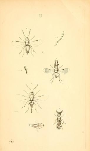 | Keywords: Monographia ChalciditumPlateHdel.jpg en 1 Encydnus sic strigosus fem Monographia Chalciditum Entomological Magazine 4 364 a Antenna 2 Encyrtus corniger mas Monographia Chalciditum Entomological Magazine 5 114 a Antenna 3 Encyrtus urocerus fem Cerchysius Monographia Chalciditum Entomological Magazine 4 435 4 Encyrtus mirabilis Ceraptocerus Monographia Chalciditum Entomological Magazine 5 114 a Forewing Taxonomy Encydnus Misspelling Synonym of Ericydnus strigosus; Walker F 1837 364 New combination for Encyrtus strigosus Nees Ericydnus strigosus Nees 1834 Encyrtidae Tetracneminae Encyrtus corniger Synonym of Eusemion cornigerum Walker 1838 Encyrtidae Encyrtinae Encyrtus corniger Walker 1838 114 Type status unknown Type locality France Encyrtus urocerus Synonym of Cerchysius subplanus Dalman 1820 Encyrtus urocerus; Curtis J 1829 113 Valid species Encyrtus mirabilis Synonym of Cerapterocerus mirabilis Westwood 1833 Encyrtidae Encyrtinae http //biodiversiyheritagelibrary org/ A Haliday s 1830 PD-old-100 Monographia Chalciditum |
