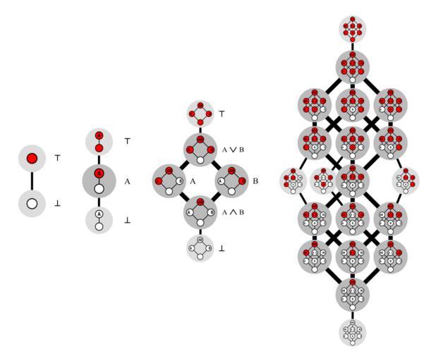 | Keywords: Monotone Boolean functions 0,1,2,3.svg </small> circle 659 623 30 contradiction circle 658 552 35 A and B and C circle 587 480 35 A and B circle 659 481 35 A and C circle 729 481 35 B and C circle 588 410 35 A and B or A and C circle 658 410 35 A and B or B and C circle 729 410 35 A and C or B and C circle 548 339 30 A circle 604 339 30 B circle 758 339 30 C circle 661 339 35 A or B and A or C and B or C < > A and B or A and C or B and C circle 588 268 35 A or B and A or C circle 659 267 35 A or B and B or C circle 729 268 35 A or C and B or C circle 588 197 35 A or B circle 658 197 35 A or C circle 729 197 35 B or C circle 658 126 35 A or B or C circle 659 56 30 tautology desc bottom-left </imagemap> The imagemap links to files where several Boolean functions are shown <br> The monotone function is always in the top right position inkscape Monotone Boolean functions svg 2011 Monotone Boolean functions svg David Eppstein derivative work mate2code Hypercube Hasse diagrams Boolean algebra |