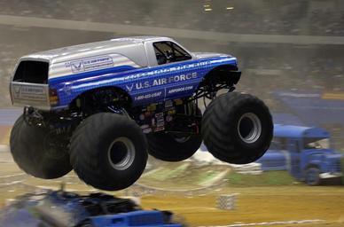 Keywords: monster truck jam rally stadium arena exhibition vehicle tires wheel show modified competition power obstacles