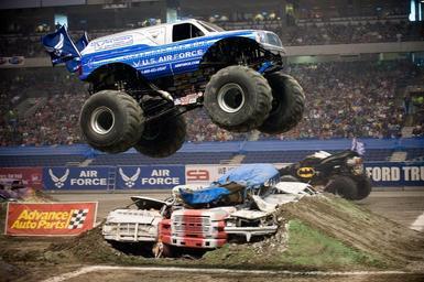 Keywords: monster truck jam rally stadium arena exhibition vehicle tires wheel show modified competition power obstacles