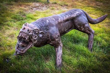 Keywords: monster wolf hills golf course new zealand arrowtown queenstown mountains beautiful nature natural mountain sky colorful summer landscape wolf sculpture