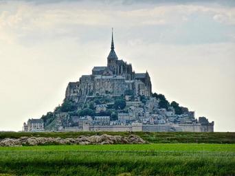 Keywords: mont st michel monastery sunlight landmark historic historical fortification rock cathedral