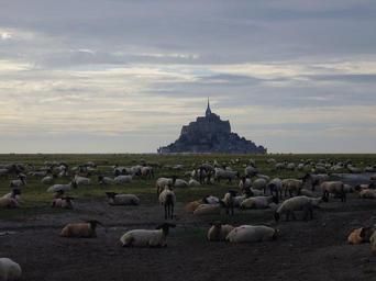 Keywords: mont st michel sheep flock of sheep atmospheric places of interest